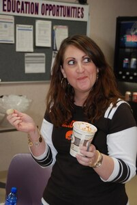 The 932nd Airlift Wing (AW) at Scott AFB, Ill. held a civilian commanders call in conjunction with the wing's annual chili cookoff. Air Reserve Technician (ART) Tech. Sgt. Melissa Baker (right), 932nd Aerospace Medicine Flight (AMDF), was one of three judges who had the tasty opportunity to evaluate